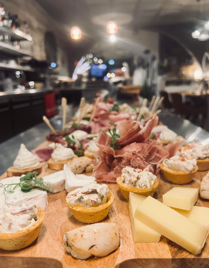 Profitez d’une planche des amis à partager proposant un méli-mélo d’arrivage et de saison le tout bien entendu accompagné d’un fond de musique jazz reposante et enivrante.